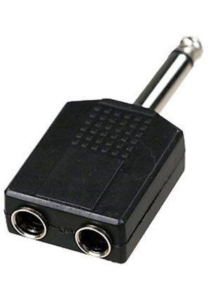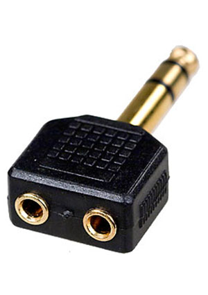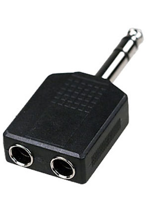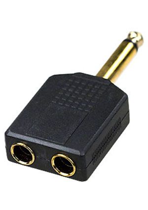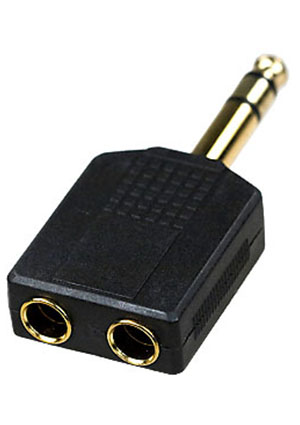 2-131G, переходник 6.35мм штекер стерео - 2 x 3.5мм гнездо стерео пластик
