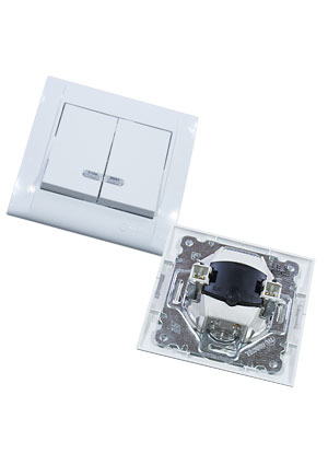 54302-W, ВЫКЛЮЧАТЕЛЬ ДВУХКЛАВИШНЫЙ IP54 6 А 220В