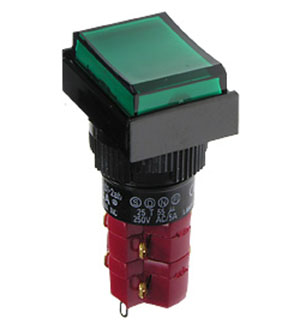 D16LAR1-1ABKG, Переключатель кнопочный с фиксацией 250В/5А LED подсветка 24В зел