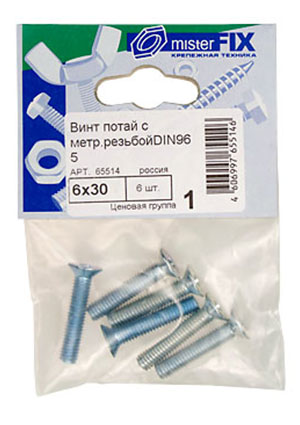 65514 ВИНТ ПОТАЙ. DIN965 M 6Х30 (6ШТ)