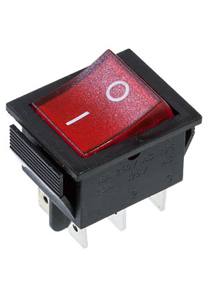 RWB-506(SC-767), Переключатель, 250В/15А, 6 конт., с подсветкой, красный