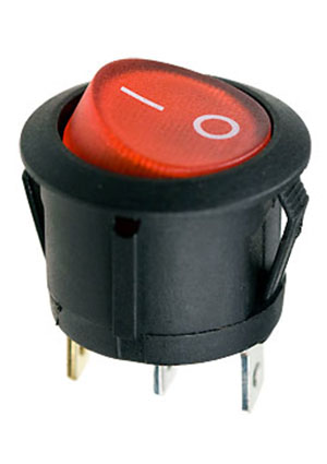RL3-5LBRBT2-H-G, переключатель клавишный ON-OFF 250B 6A черный с красной подсветкой