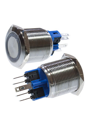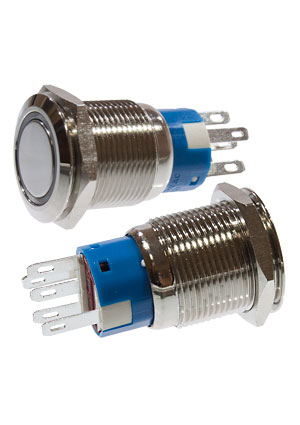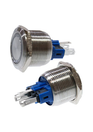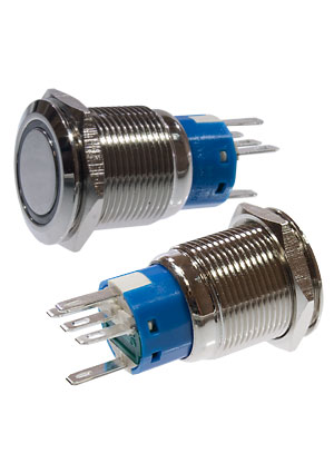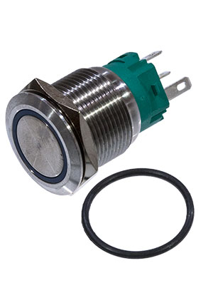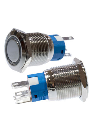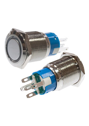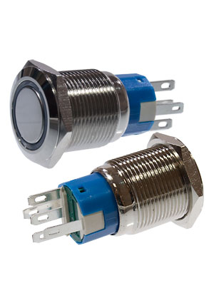 SC-984B d22 12V, Кнопка антивандальная металл 22мм 12В, фикс/подсветка синяя